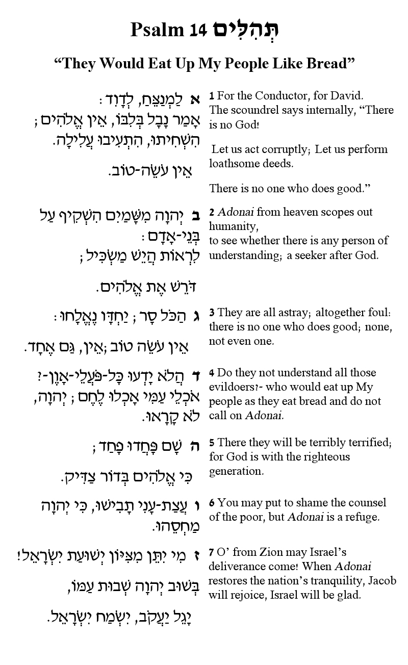 The Psalter proclaims of his nation’s enemies, “They would eat up my people like bread.” As the Psalter looks around, faithless evil abounds. And yet…