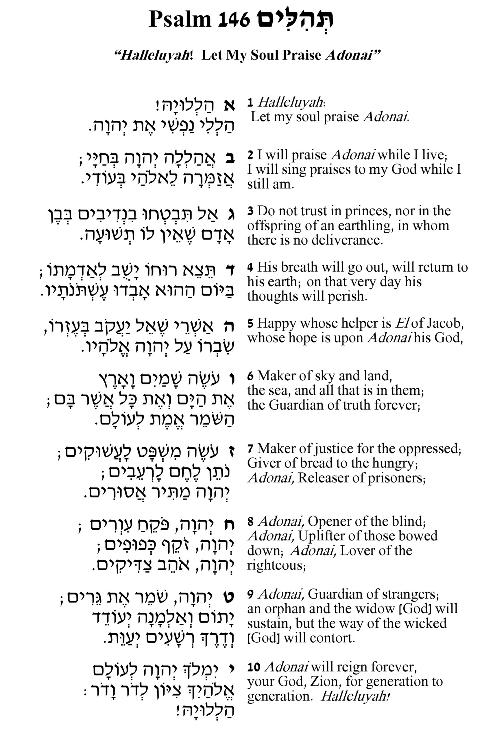 Psalms 146-150 is a unit. Each opens and closes with Halleluyah. We do not know if the editor of Psalms put in the words or grouped them together due to shared style. What is clear is that the Psalms culminate in praise. Psalms have many moods, often reflecting crisis and even despair, but concludes with unbridled celebration of the Creator and enduring Caregiver.