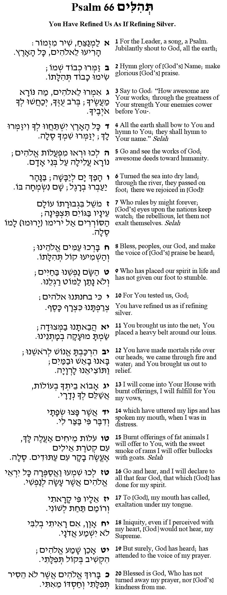 So what does the Psalmist mean in saying, “You have refined us as if refining silver?” How is Psalm 66 relevant for our lives?