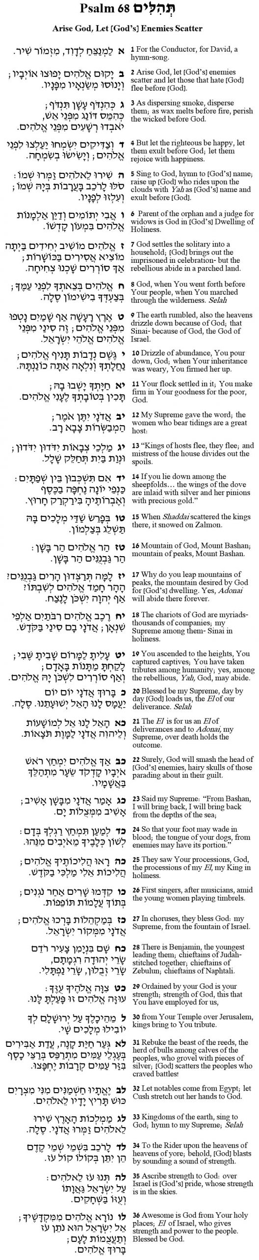 Traditional Jewish commentators largely see this Psalm as a description of God’s revelation at Mount Sinai in the aftermath of the Exodus from Egypt. The Vilna Gaon of 18th century Lithuania proscribed its reading for the second day of Shavuot, celebrating the gift of Torah. A close reading of Psalm 68 will add content to you singing before the Ark, “Arise God, disperse our enemies….”