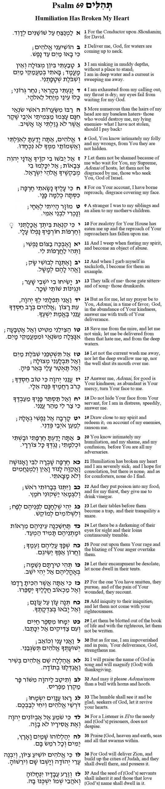 Preacher, prophet, or paranoid zealot? The speaker of Psalm 69 lives in an unstable time. Classic commentators say that it is just after the return from the Babylonian exile amidst a debate whether to rebuild the Temple. He claims that those who hate him are seeking to poison his food and sing drunken songs of his mournful ways. Among the wordplays is the similar sound of shir (song) and shor (bull), suggesting that God will warmly welcome his song in place of a bull as an offering.