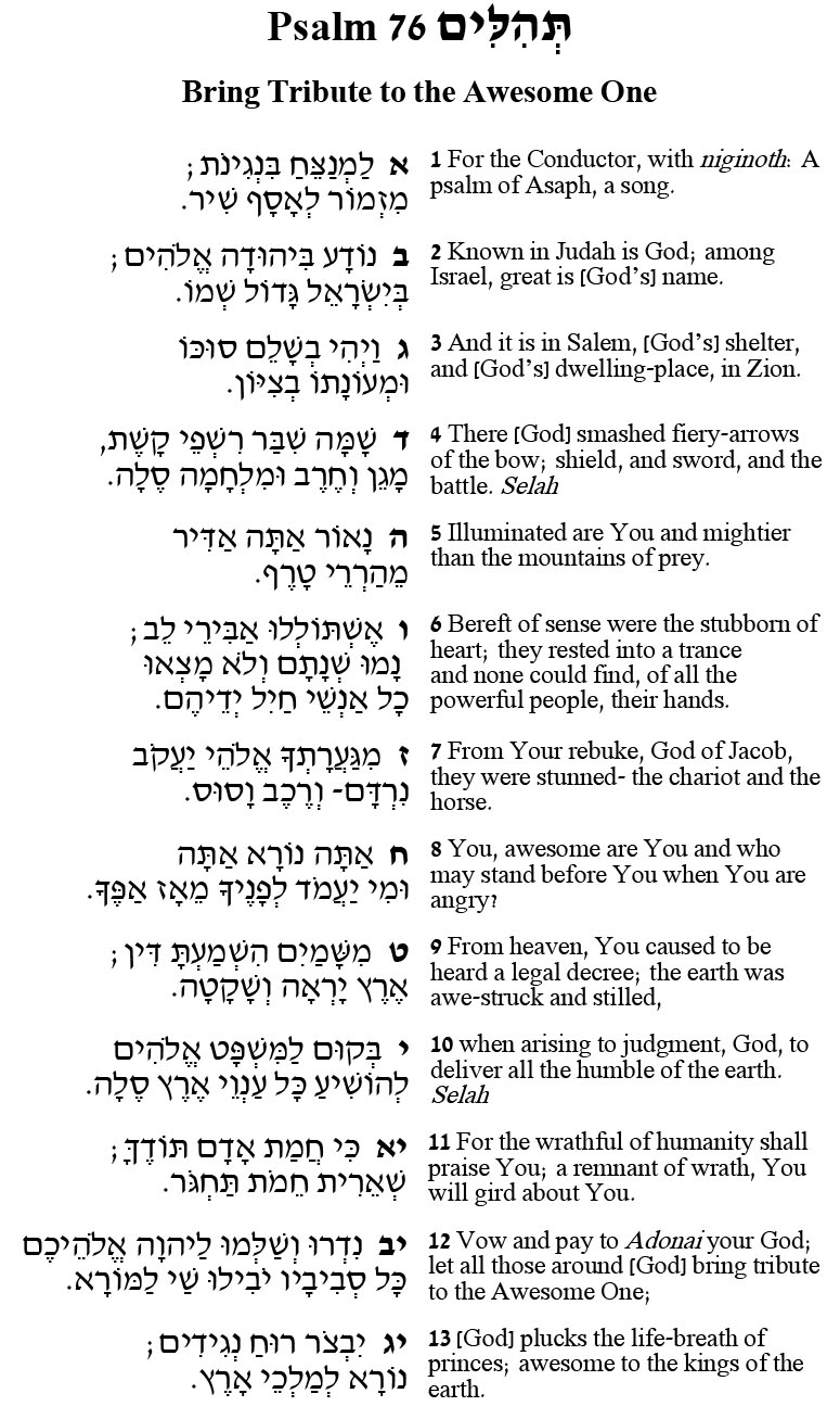 Correction: In the Psalm presentation, I make reference to Targum, the Aramaic translation of Hebrew Scripture. In regard to the identity of the Targum for Psalms, scholars indicate a variety of anonymous authors at different times of the first centuries of the Common Era.. In my talk, I focus on Onqelos/Aqiles the convert of the second century CE. He is the best known of the Aramaic translators, but his work only encompassed the Five Books of Moses (See Talmud, Megillah 3a).
