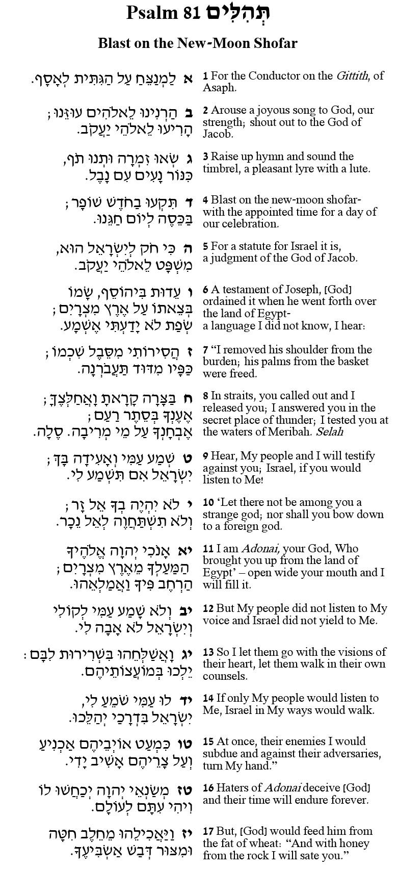On Rosh Hashana we are called by the shofar to remember: our year, those with whom we shared the holiday in the past, and who we could become with greater focus and purpose. Each Thursday, we also read Psalm 81 as the Psalm of the day.