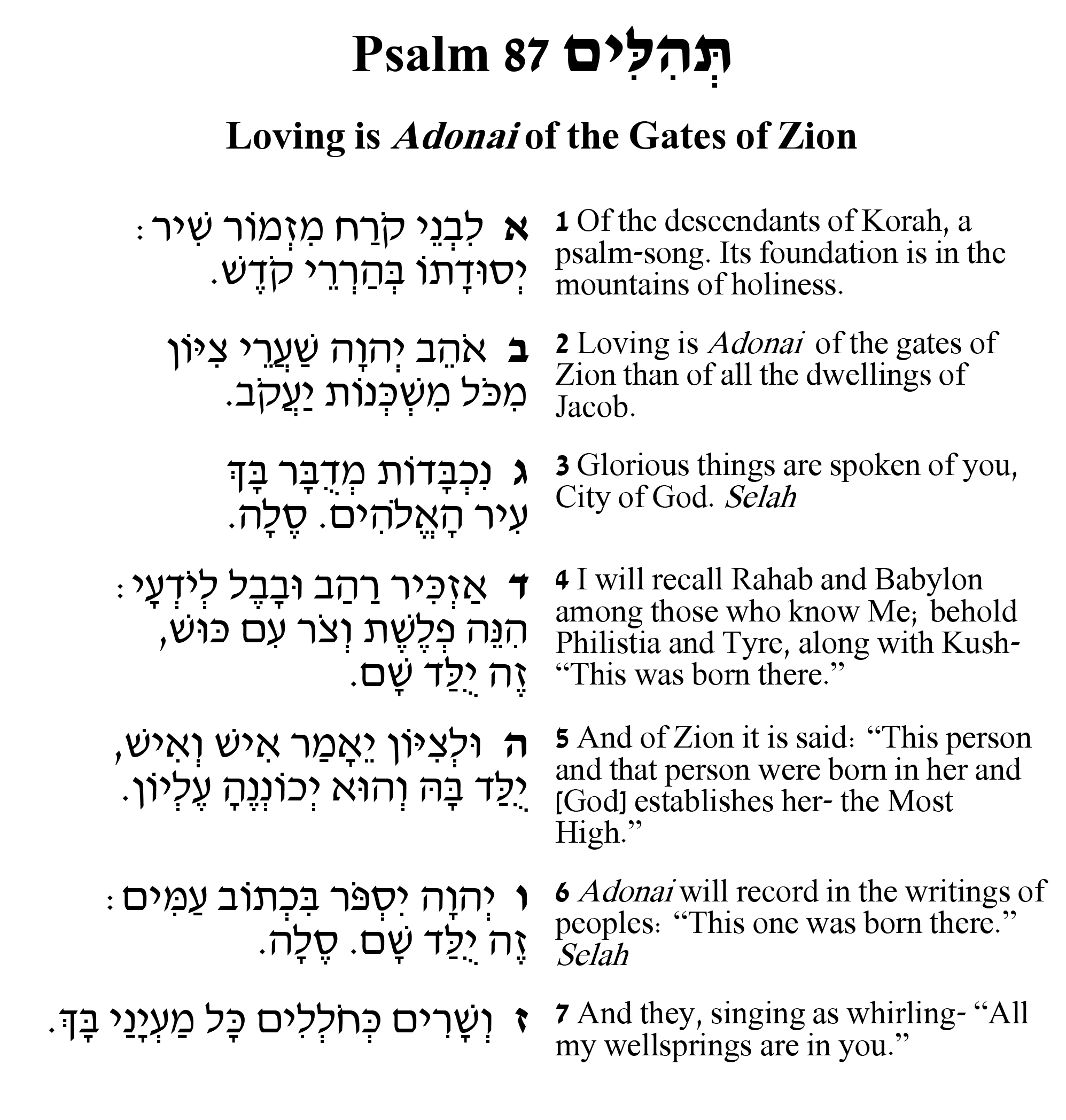 Join me in analyzing the purposeful weave of the Psalm, conveying both God’s love of Zion and potentially all the inhabitants of the world.